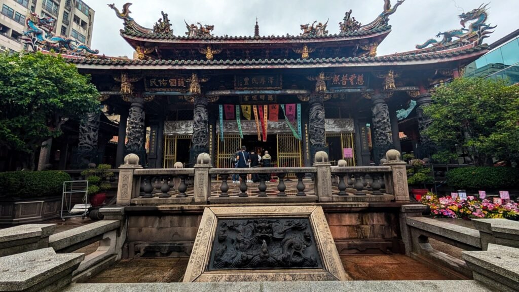 Fun history tidbit: Built in 1738 by settlers from Fujian, it’s one of Taipei’s oldest temples… and it has survived earthquakes, fires, and even wartime bombings like a resilient grandma who refuses to retire. It blends Buddhist, Taoist, and folk deities, so it’s basically the spiritual version of a multi-cuisine buffet.