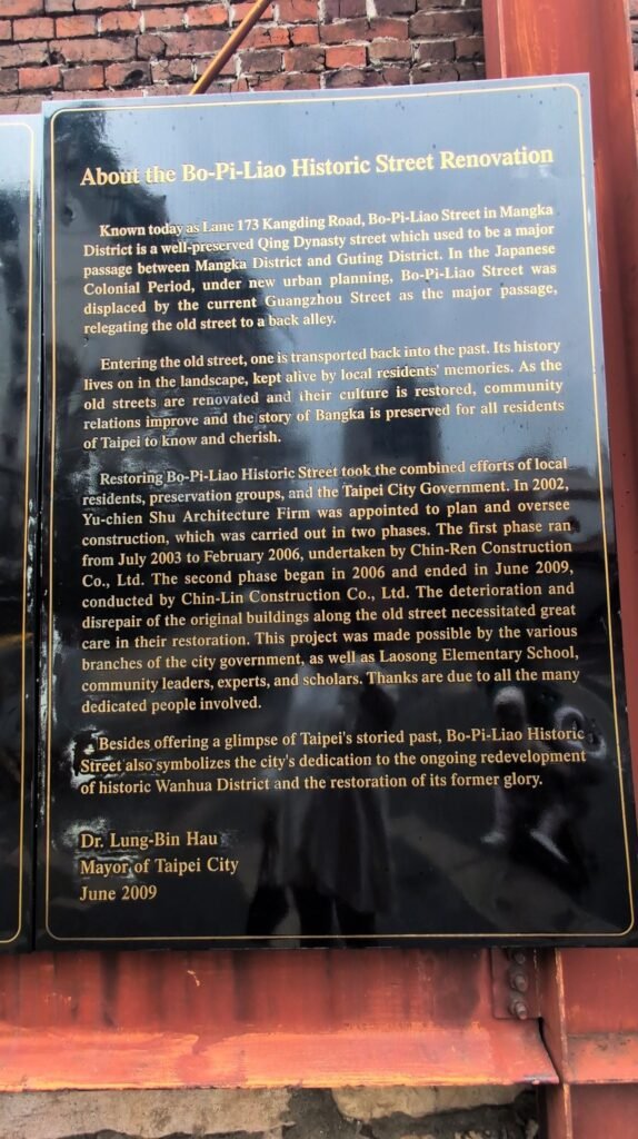 A short stroll from Longshan brought us to Bopilao Historical Block… red brick, wooden doors, narrow alleys, and a deep sense of preserved history.